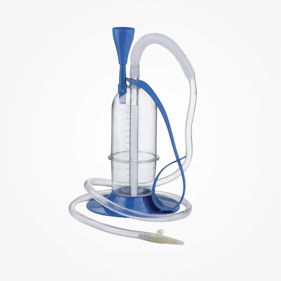 Pediatrik hastalar için özel olarak geliştirilmiş olup, 700 ml kapasitesi, devrilmeyi önleyen tabanı ve güvenli bağlantı elemanlarıyla klinik kullanımda yüksek performans sağlar.